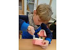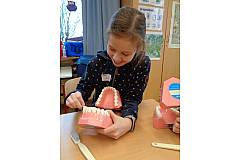 In enger Kooperation mit dem „Arbeitskreis Zahngesundheit“ finden in jedem Schuljahr die „Tage der Zahngesundheit“ an unserer Schule statt. Unsere Schüler und Schülerinnen lernen den Aufbau eines Zahnes kennen, beschäftigen sich mit dem Stellenwert gesunder Ernährung für die Zahngesundheit und erfahren, wie viel Zucker sich in vielen Lebensmitteln versteckt und wo man ihn nicht vermuten würde.